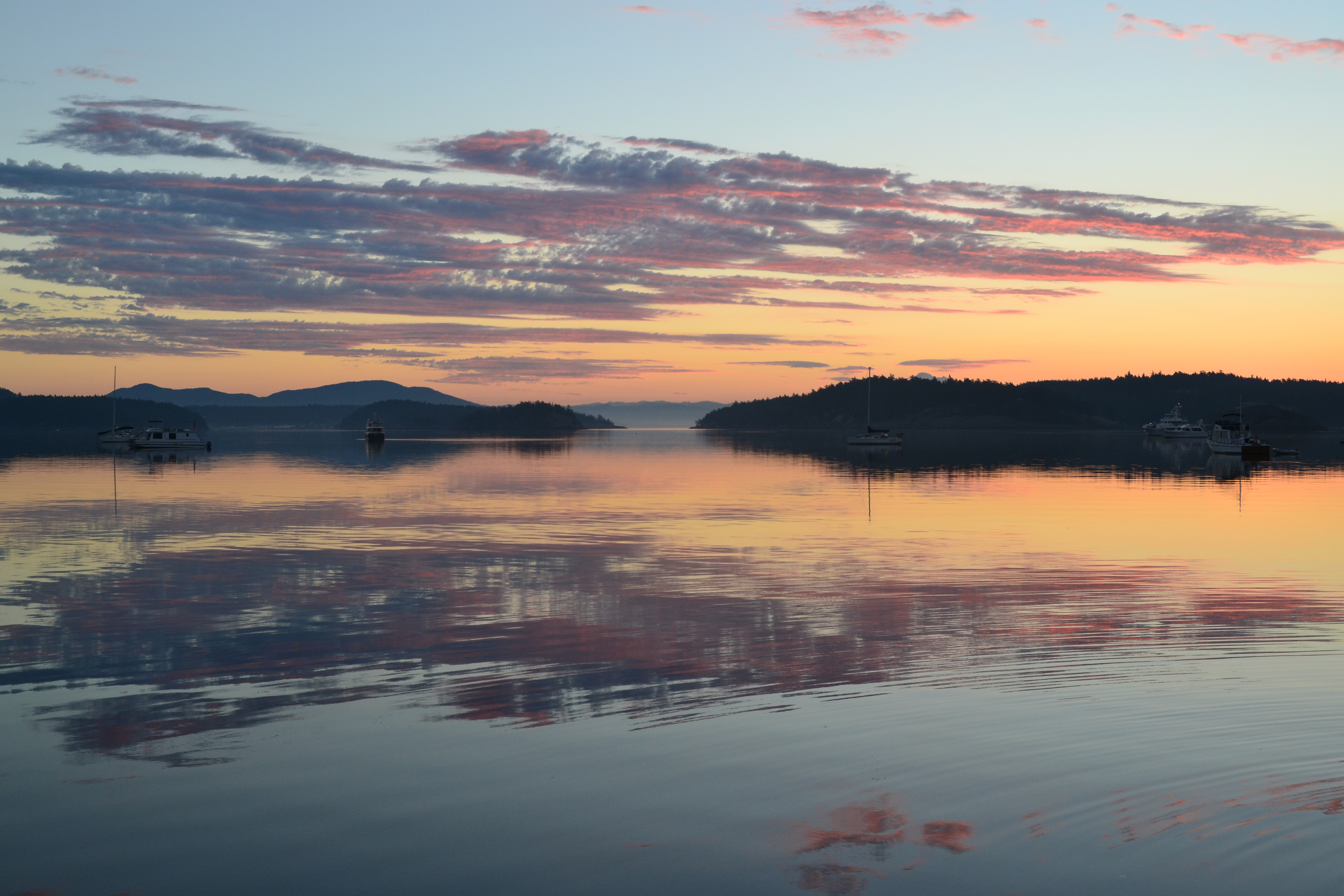 We spent our last night in Hunter Bay, Lopez Island, one of our favorite places over the years. We laughed when we put the anchor down because we had forgotten that it is only 17′ deep there and we’ve been anchoring in 75-100 feet. What a difference!